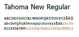 Här använder vi typsnittet Tahoma. Anledningen till att vi här väljer Tahoma är för att det är Apex närmaste motsvarighet bland så kallade ”standardtypsni tt”. Tahoma finns installerat i såväl Windows- som Apples operativsystem. Det eliminerar onödiga typsnittskonflikter och gör att vi med säkerhet vet att vår kommunikation ser identisk ut hos alla mottagare.