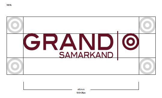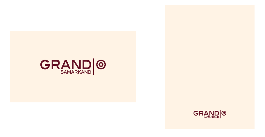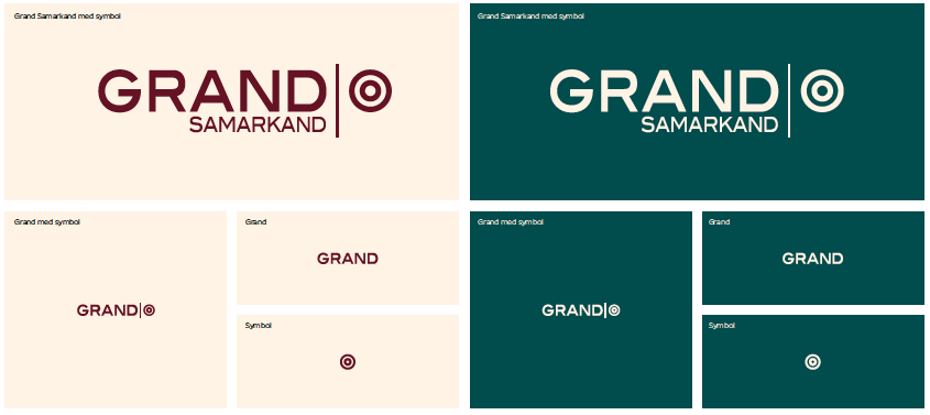 - Primär logotyp – fullständig version med både symbol och text Grand Samarkand. Används i format större än 50 mm och när det finns tillräckligt med utrymme.