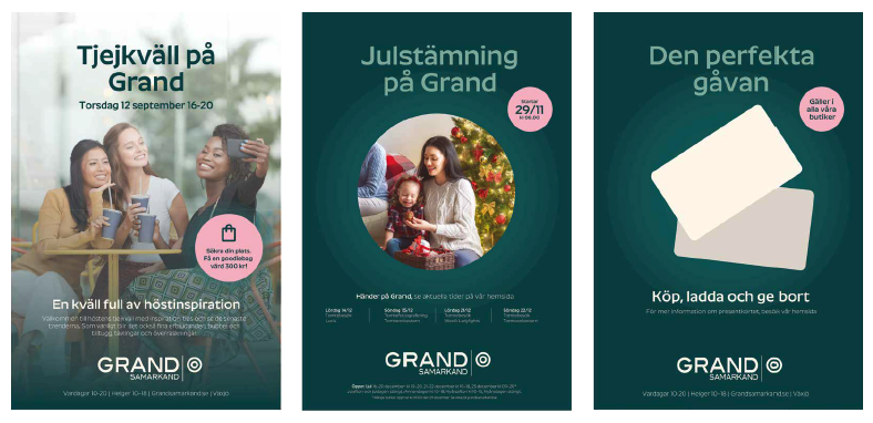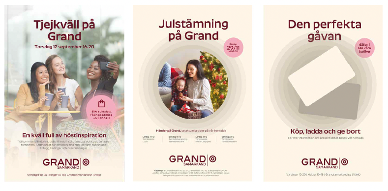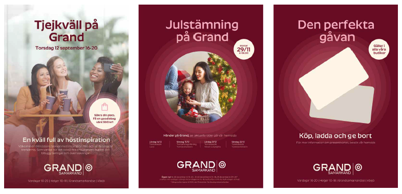 Välkommen till Grand Samarkand i Växjö. Här hittar du både välkända favoriter och helt nya bekantskaper bland våra 70-tal butiker, caféer och restauranger. Öppet sju dagar i veckan, alltid gratis parkering. Grand Samarkand – en plats man vill vara på.